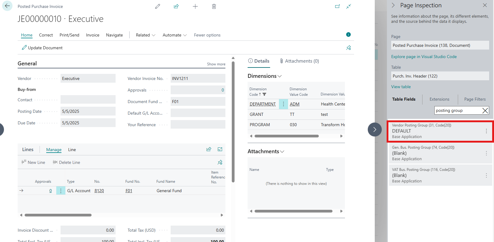 Resolves the issue where the Vendor Posting Group was not being populated after transactions were posted from the Purchase Journal.