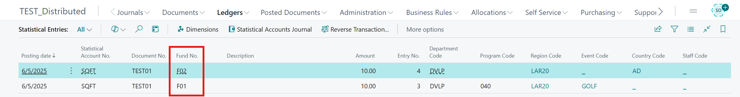 The Fund No. field from registering statistical journals is now consistently posted to Statistical Entries to allow for proper inquiry and reporting on statistical entries.