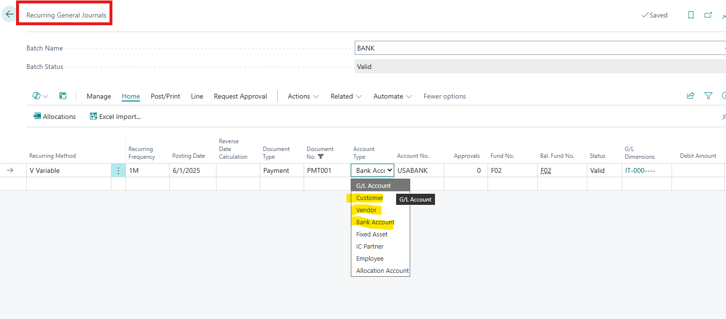 Users were getting an error message when posting Recurring General Journals that the Fund is out of balance. This error would prevent the batch from posting. This issue was caused by a journal line with a type of Bank Account, Vendor or Customer.