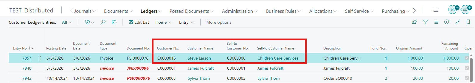 The additional fields give users more information on ledger entries, especiallycially when the Bill-to and Sell-to customer numbers are different.