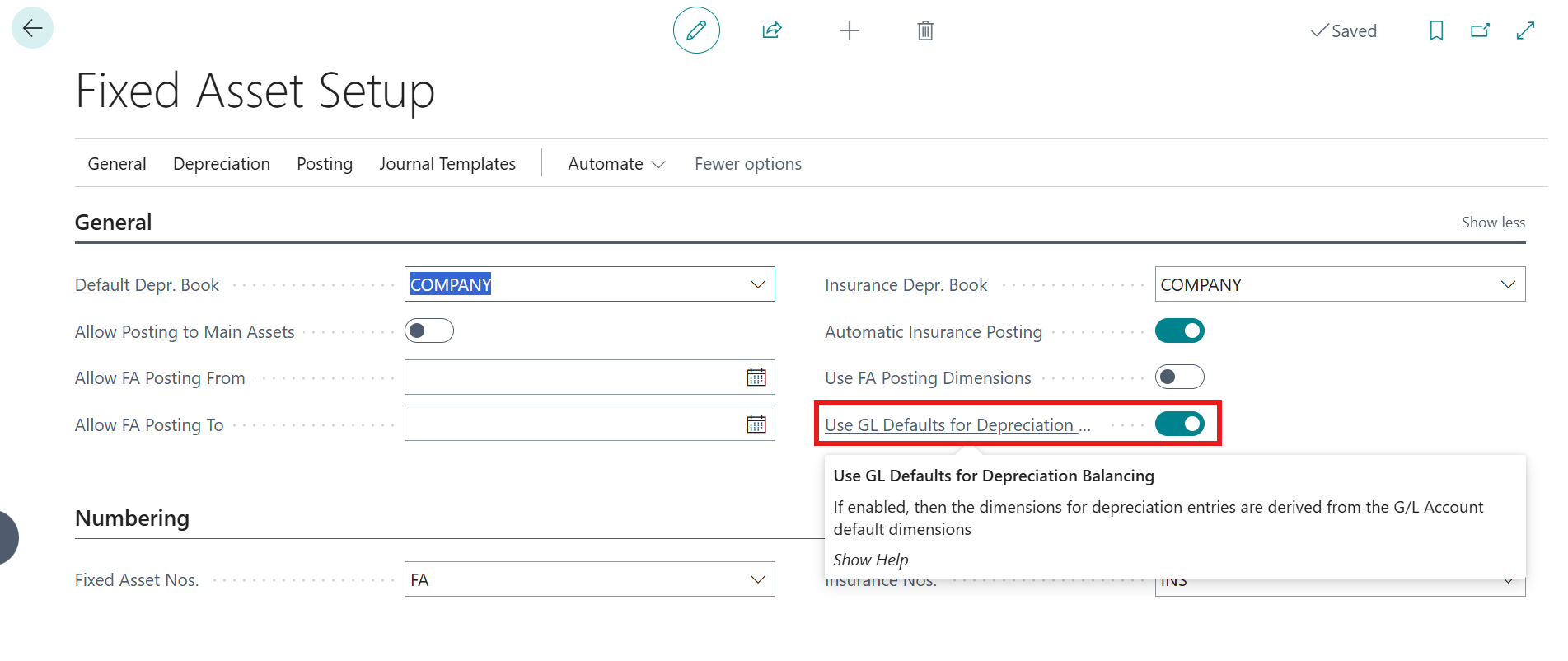 Fixed Asset depreciation entries will now automatically get set to the proper default value.